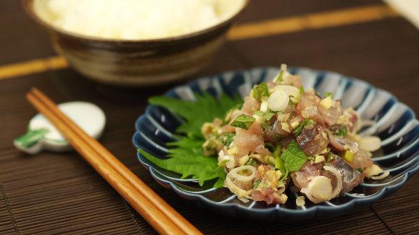 房総半島沿岸に伝わる郷土料理で主に鯵、鰯、飛魚などの青魚を使い、漁師が船上で調理して食したのが始まりとされています。 最後は皿を舐めるほど美味しかったことから『なめろう』という名前が付いたと言われています。